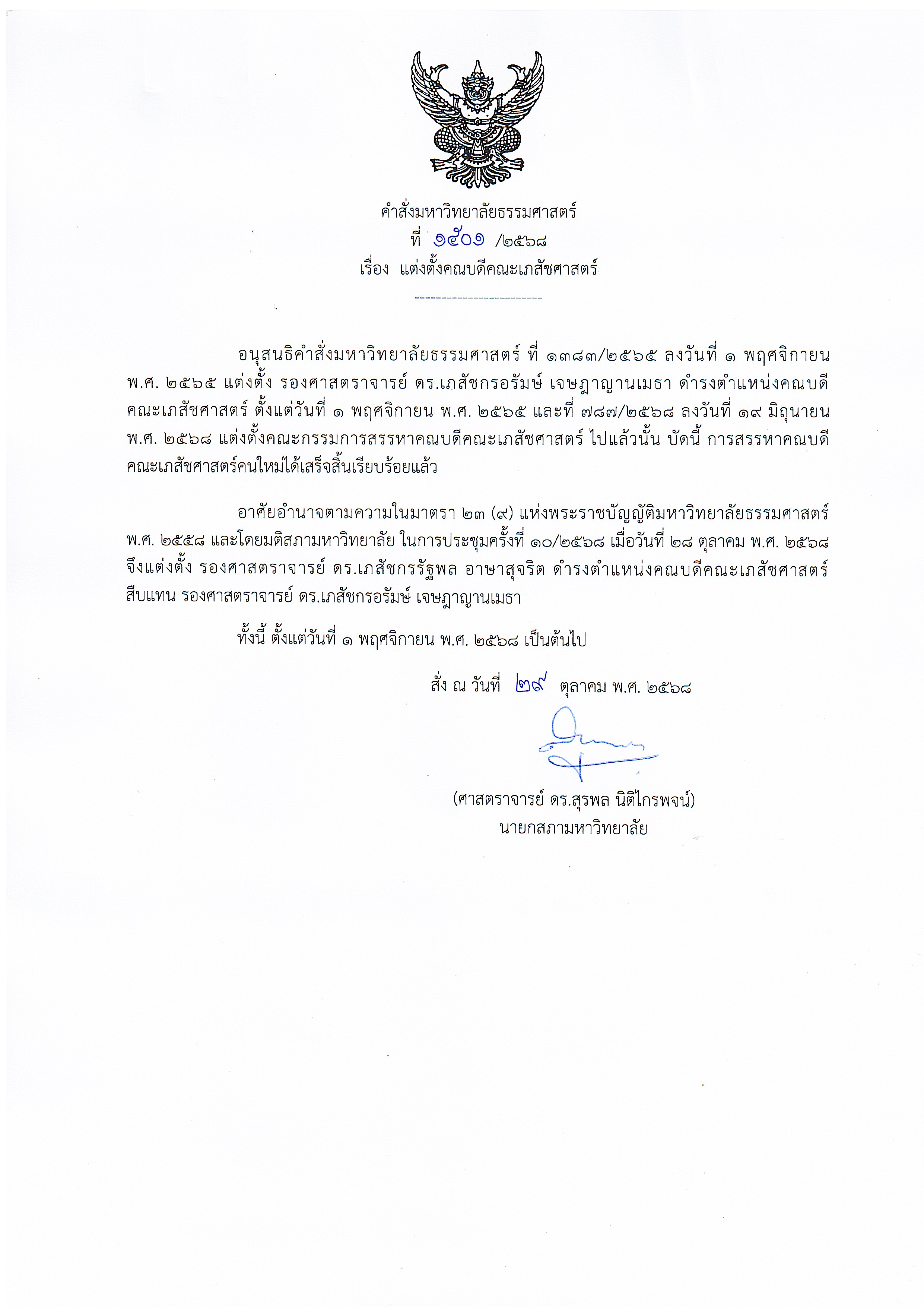 คณะเภสัชศาสตร์ มหาวิทยาลัยธรรมศาสตร์ รับสมัครบุคคลเข้ารับการสรรหาคณบดี ตั้งแต่ วันที่ 23 กรกฎาคม – 27 สิงหาคม 2568 download